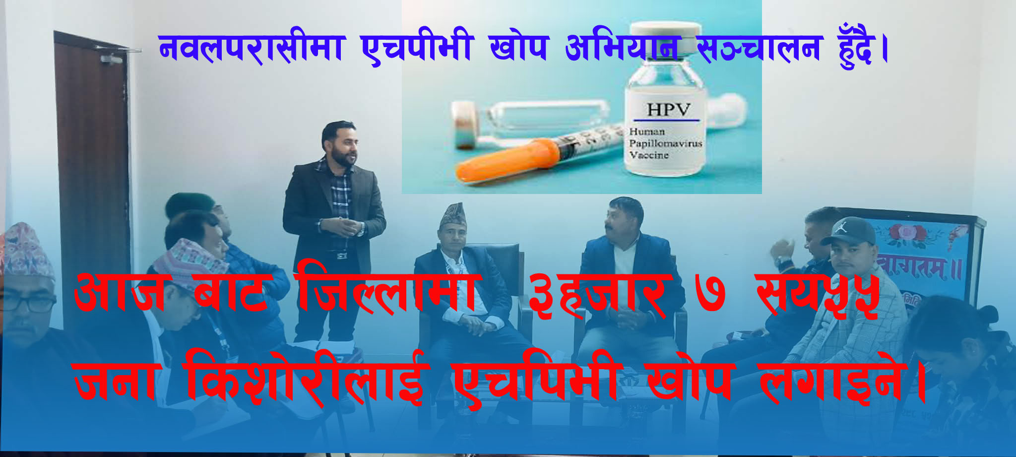 विद्यालय केन्द्रित नियमित एचपीभी खोप सम्बन्धी जिल्ला खोप समन्वय समिति तथा सञ्चारकर्मी अन्तरक्रिया कार्यक्रममा यसबारे जानकारी दिइएको थियो। स्वास्थ्य कार्यालय नवलपरासीका वरिष्ठ खोप अधिकृत भेषराज शर्माका अनुसार जिल्लाभर करिब ३ हजार ७ सय ५५ जना किशोरीलाई एचपीभी खोप लगाइनेछ।
